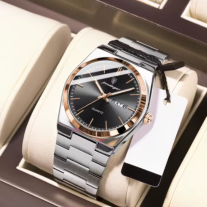 Onyx incarne la puissance et l'élégance du mouvement. Avec son cadran noir profond et ses accents en or rose, elle reflète la maîtrise et la détermination.